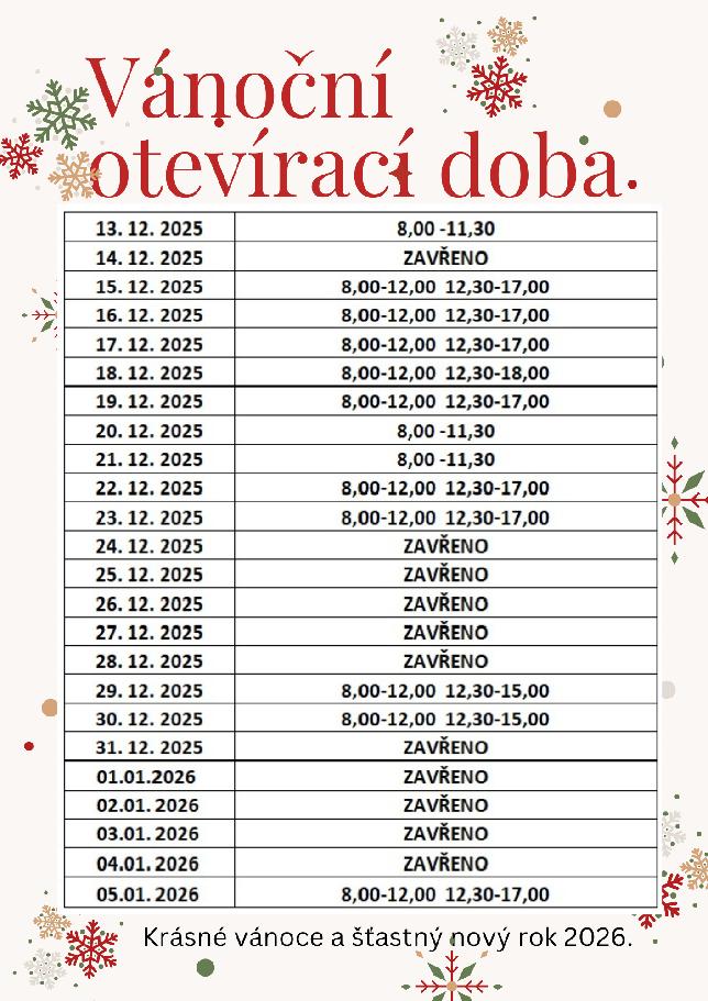 VÁNOČNÍ OTEVÍRACÍ DOBA